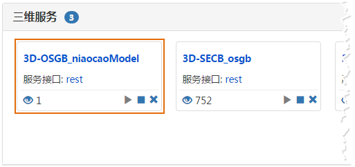 This operation released a 3D service named "OSGB_niaocaoModel", see the service list in the figure below.
