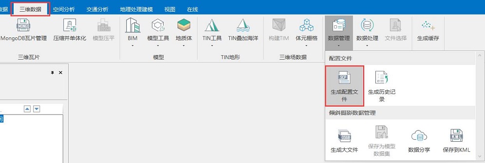 (1). In the "Tilt Photography" tab of the SuperMap iDesktop desktop product, click the "Generate Configuration File" button, as shown in the figure below.