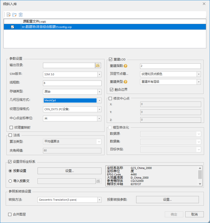 (7). If the oblique photogrammetric model requires coordinate conversion, check the "Coordinate Conversion Parameter Setting" check box to set the target coordinate system and reference system conversion settings. The parameter settings are as follows: