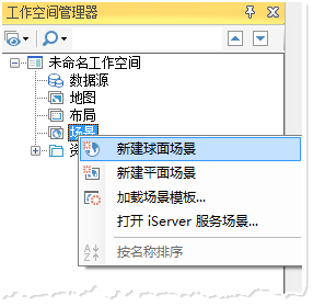 (1). In the "Workspace Manager" of the SuperMap iDesktop desktop product, under "Scene", right-click "New spherical scene".