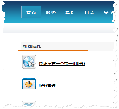 (5). Open the browser, enter http://localhost:8090/iserver/manager in the address bar and enter "Service Management" page, click the "Quickly publish a service or a group of services" button under "Home".