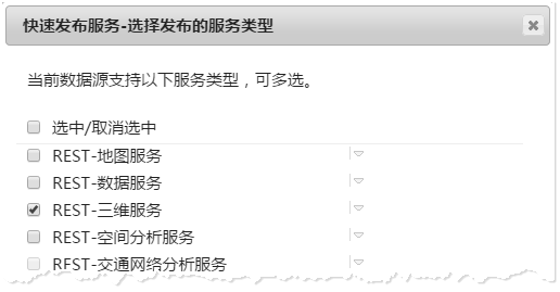 (8). "Quick Publish Service-Select the type of service to publish" dialog box pops up, check "REST -3D Service", click "Next".