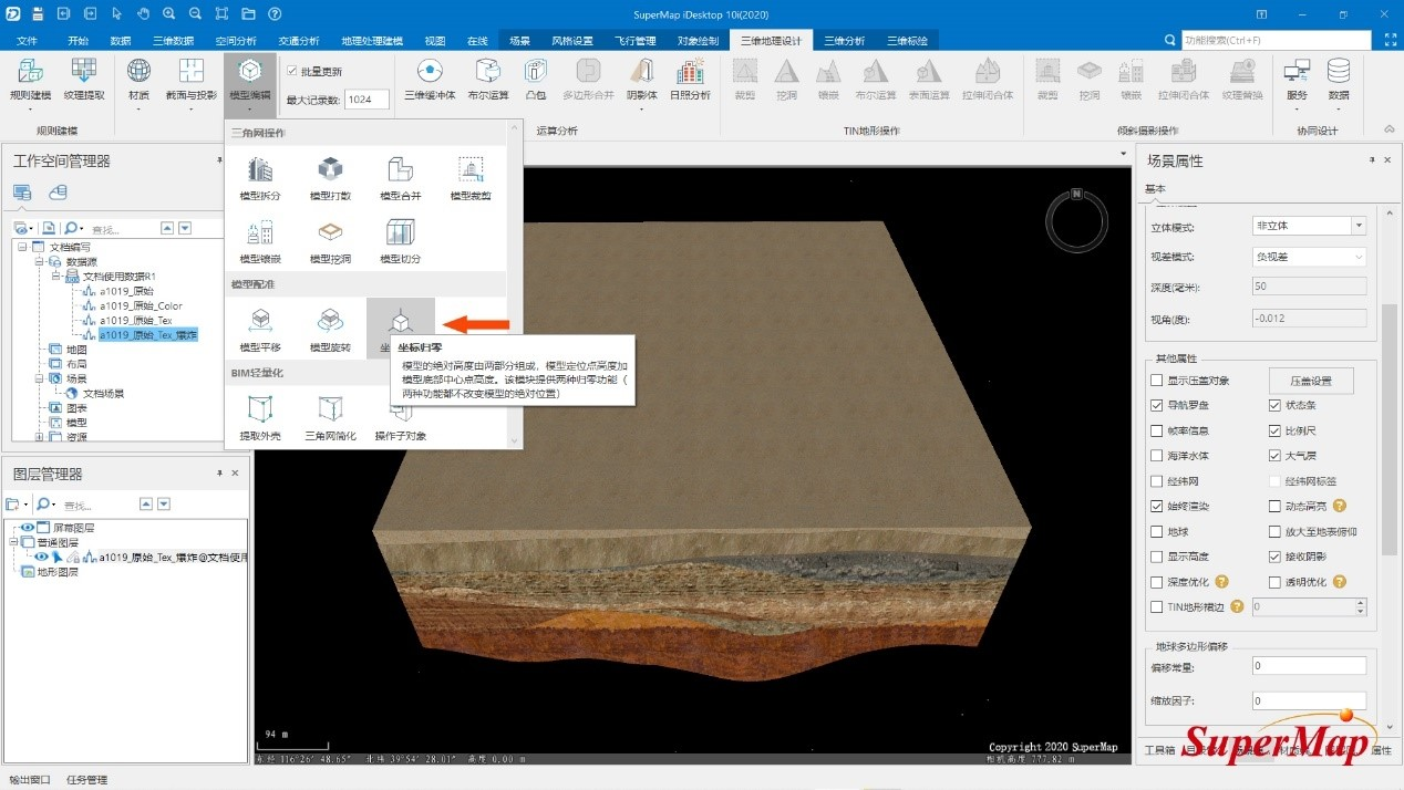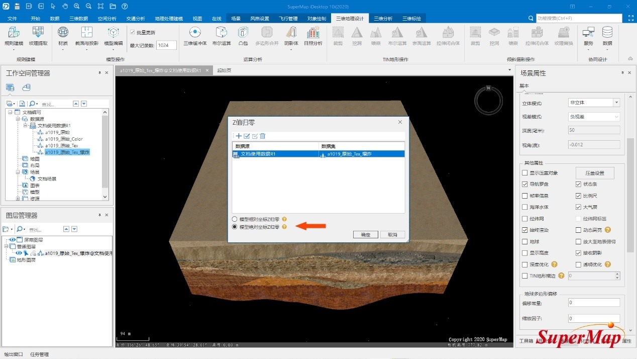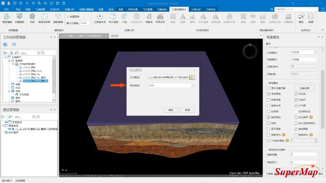 If the imported geological body model has no material, or if you want to modify the material of the model, you can do it in SuperMap iDesktop.